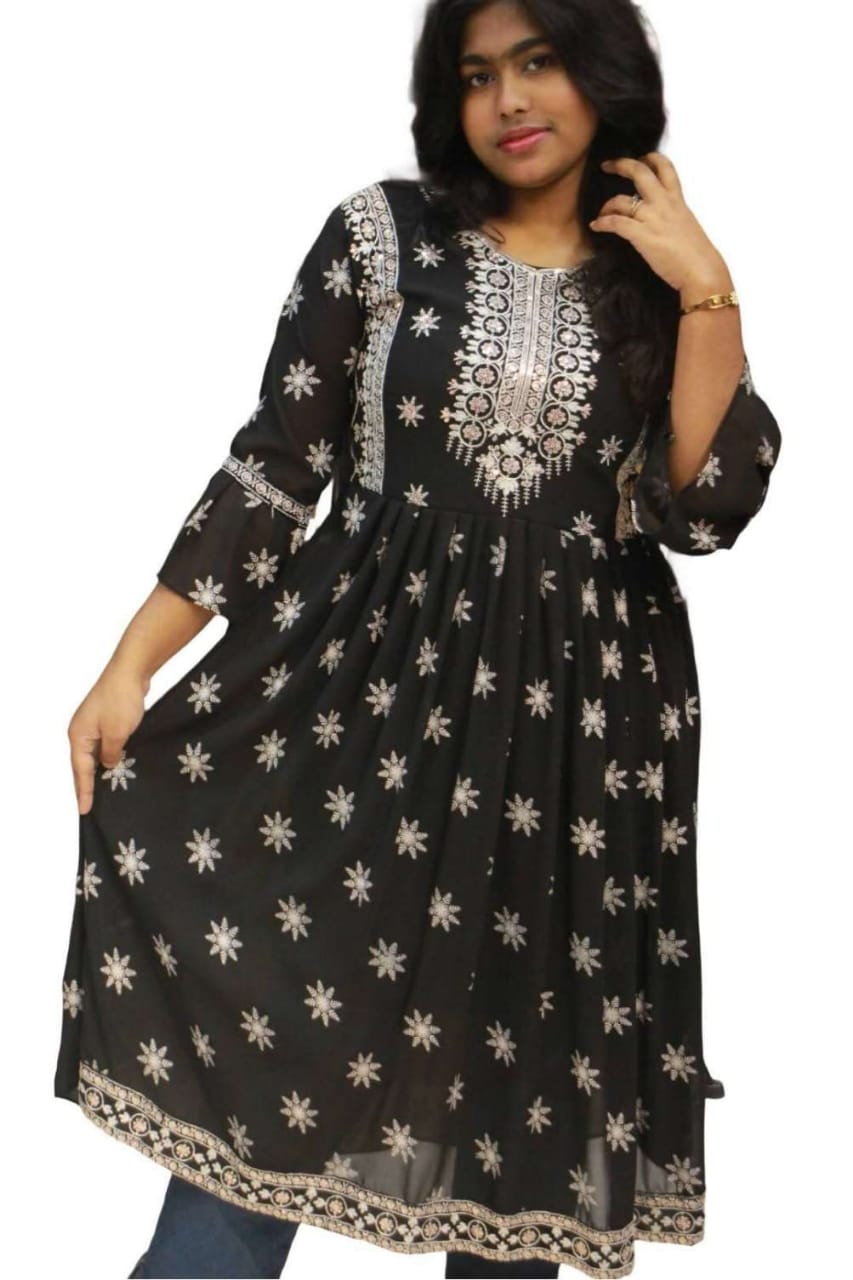 প্রিমিয়াম ব্ল্যাক এমব্রয়ডারি জর্জেট আনারকলি কুর্তি - ফেস্টিভ কালেকশন