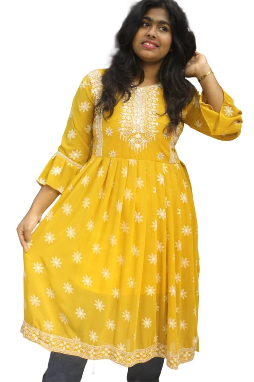 "মাস্টার্ড ইয়েলো জর্জেট আনারকলি কুর্তি"